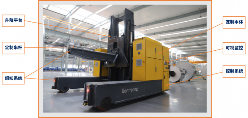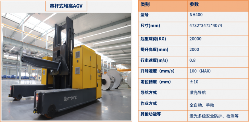 超重载(20吨级+)串杆式堆高叉车AGV产品是由客制化AGV本体、智能识别系统、智能调度系统、智能监控系统等软硬一体化相结合的智能系统产品。