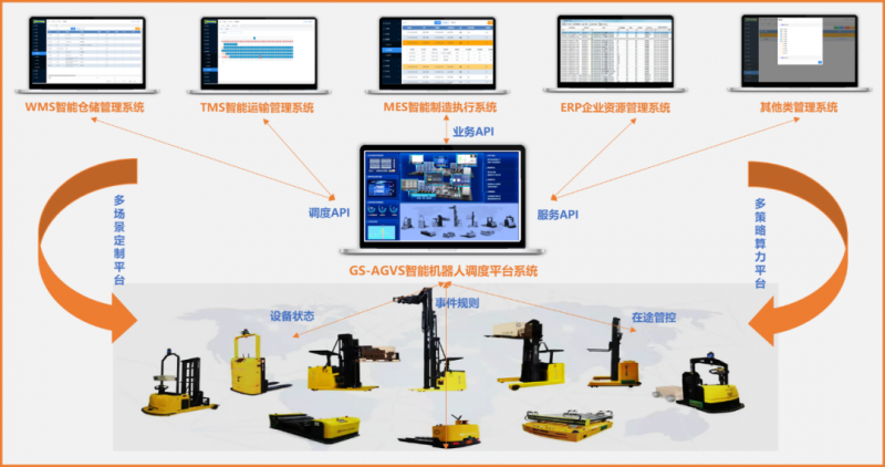 井松智能研发的场景化流程化定制化的智能调度系统平台,实现多系统兼容对接、多任务一键齐发、多策略自定义适配,完美匹配客制化、多样性需求目标。