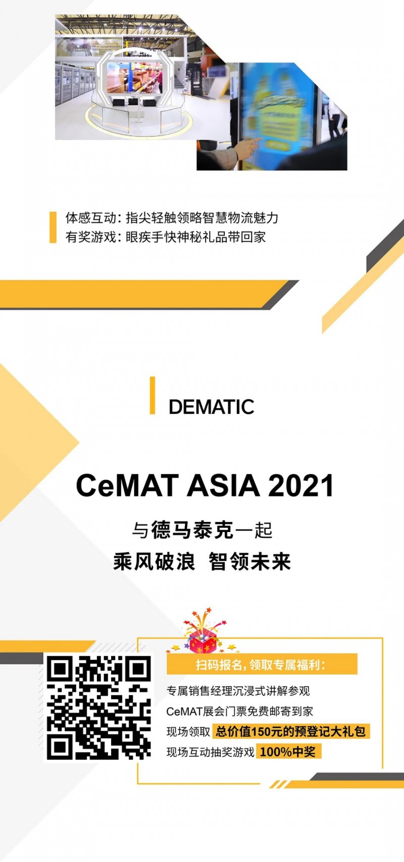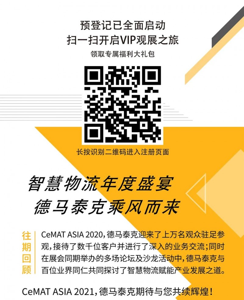 预约成功后,展会现场打开“德马泰克”微信公众号→“媒体中心”→“CeMAT 预约”页面并登陆,到W1馆B4德马泰克展位前台出示给工作人员领取。
