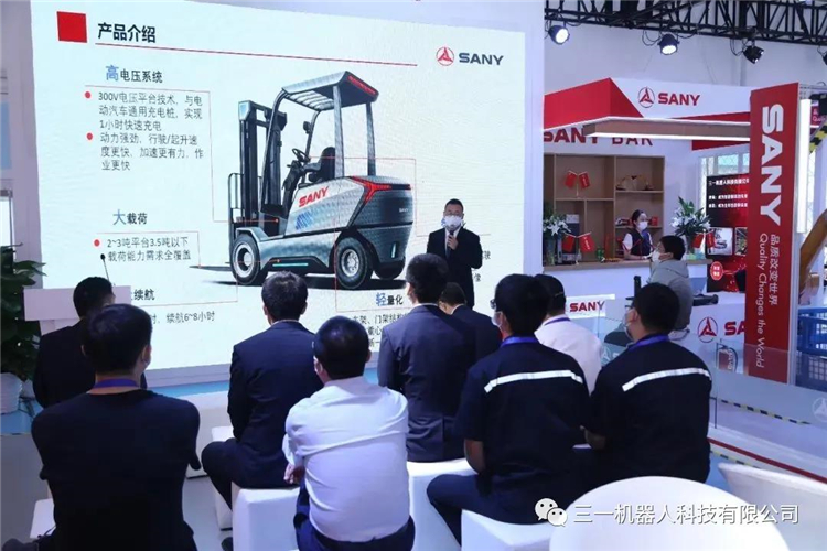 叉车式AGV、背负式AGV、新能源锂电叉车……在三一展位,这些清洁又聪明的机器人令人赞叹。