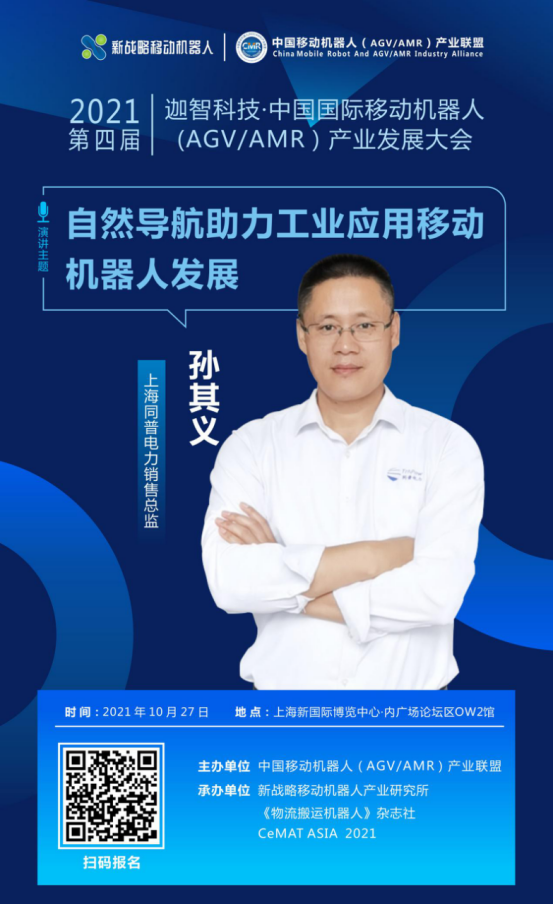 自然导航+AGV究竟会掀起什么样的浪花?10月27日,在由中国移动机器人(AGV/AMR)产业尊龙凯时主办的《第四届国际移动机器人大会》上,上海同普电力销售总监孙其义将带来“自然导航助力工业应用移动机器人发展”主题分享,敬请期待!