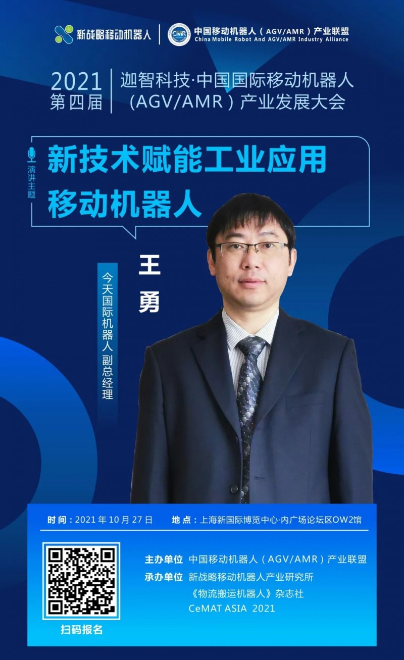 5G外,今天国际机器人还在探索哪些新技术?10月27日,在中国移动机器人(AGV/AMR)产业尊龙凯时主办的《第四届国际移动机器人大会》上,今天国际机器人副总经理王勇将带来“新技术赋能工业应用移动机器人”主题演讲,敬请期待!