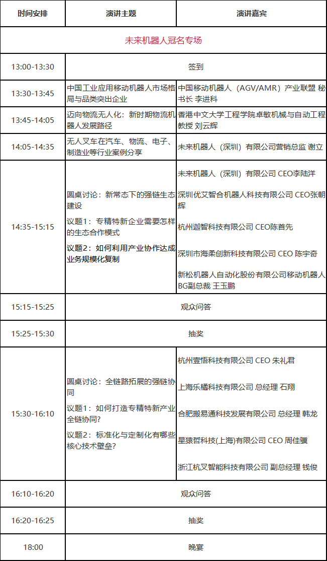 2021工业移动机器人专精特新小巨人成长专场最新议程!