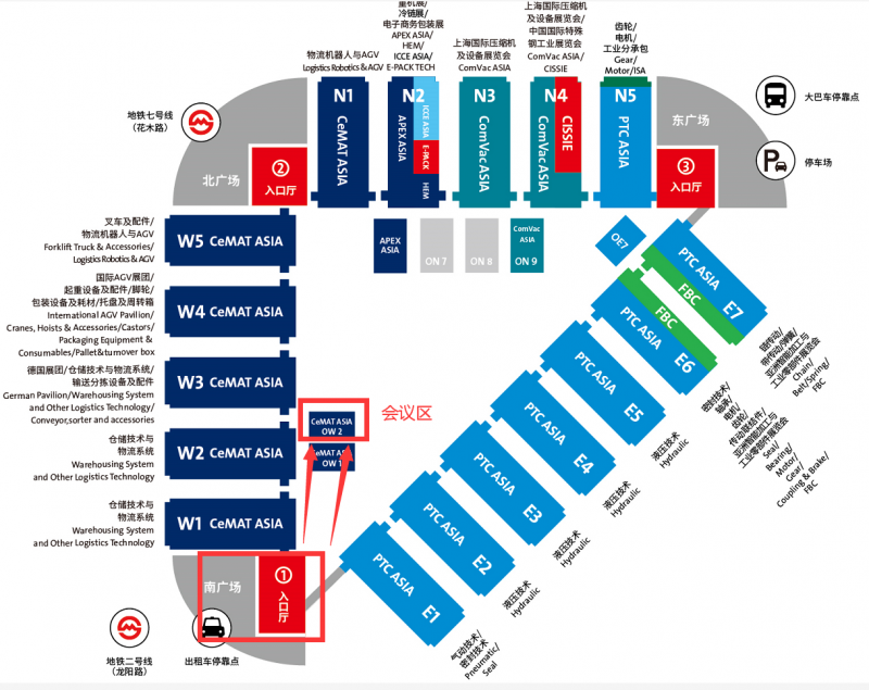 会议地点:上海新国际博览中心·内广场OW2馆(南广场1号入口厅进比较方便,见下图)