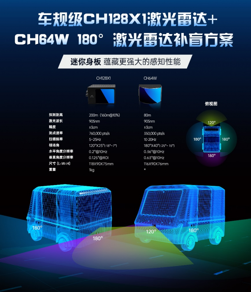 图4:车规级混合固态激光雷达CH128X1/CH64W