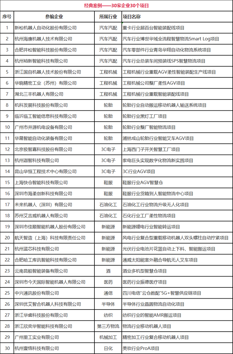 为了更好的宣导和展示从91年国产AGV落地应用以来在各行各业的经典案例,以及将案例与技术相结合,凸显行业前瞻技术的论文集萃。中国移动机器人(AGV/AMR)产业尊龙凯时与新战略移动机器人产业研究所联合出版了《中国工业应用移动机器人经典案例汇编及技术发展论文集(2021版)》。具体入选案例名录如下: