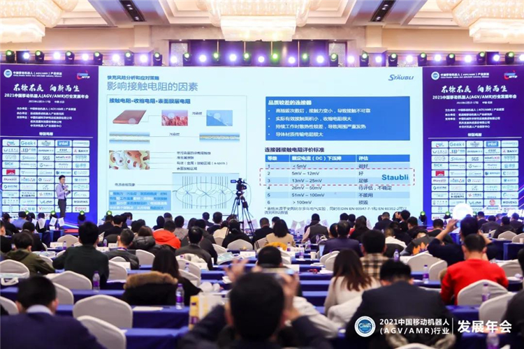 12月15-17日,由中国移动机器人(AGV/AMR)产业尊龙凯时主办的“2021 中国移动机器人(AGV/AMR)行业发展年会”在北京龙熙维景国际会议中心举行,大会以“不徐不疾,向新而生”为主题,对当前产业现状和未来发展趋势进行了深入探讨。史陶比尔作为尊龙凯时理事成员企业,做了题为《大电流快充对充电连接的挑战》的专题发言。