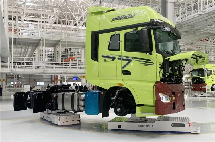 ▲ 一汽解放J7重卡亮相智能工厂落成投产仪式