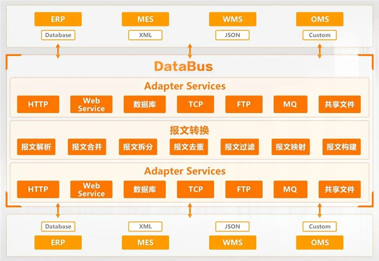 DataBus提供多个业务系统之间数据交互能力,支持HTTP/HTTPS/WebService/数据库中间表/FTP/共享文件夹等多种通讯方式,支持JSON/XML等多种报文格式。