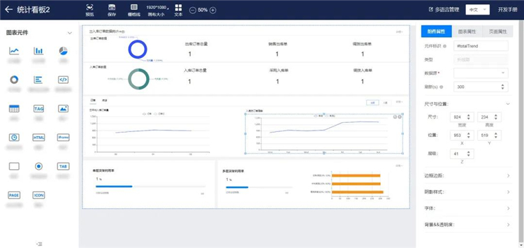 数据可视化组件DataView,通过灵活配置数据源和图形化拖拽配置页面布局,实现业务数据的可视化展示,快速响应管理界面修改、统计报表展示等需求。