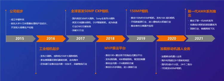华睿科技总裁李铭表示:“从2016年发布小面阵系列相机;到2018年推出MVP算法平台、线阵相机及智能相机,丰富了产品种类;再到2020年最高像素达到6亿,并加载移动机器人业务,华睿科技一直坚持以技术创新为引领,始终致力于为智能工业的转型升级提供动力。在深耕国内市场的同时,华睿科技积极拓展海外业务,并正为全球客户提供优质的产品与解决方案。作为一家机器视觉和移动机器人领域的产品方案提供商,华睿科技依托机器视觉和移动机器人两大板块,以技术创新为驱动,践行‘让工厂更智能’的初心使命,打造工业互联的创新应用,推动制造业全要素、全产业链的互联互通,以数字孪生赋能千行百业,为我国的智能工业转型提供强劲动力。”