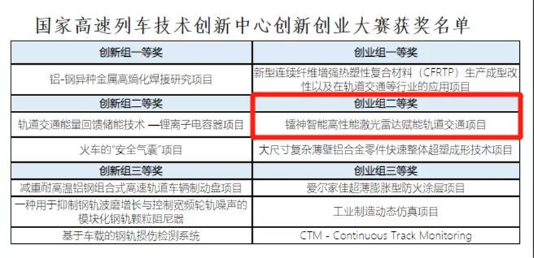 核心提示:镭神智能以高性能激光雷达赋能轨道交通项目荣膺该创新创业大赛的创业组二等奖。