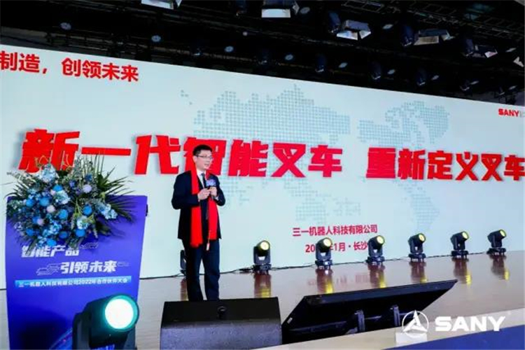 2022年1月7日,以“智能产品,引领未来”为主题的三一机器人科技有限公司2022年合作伙伴大会在湖南长沙举行,会议上,三一机器人赋能离散智能制造一体化解决方案正式发布,AGV新品和3吨高压锂电平衡重叉车新品震撼亮相。