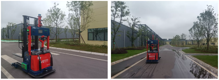 a.自主研发的完全室外环境(无需靶标)叉车式AGV;