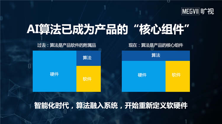 过去,算法只是产品软件的附属品,往往在硬件设计好后才去构建软件。在创新智能产品的研发过程中,旷视发现,产品的易用度、特性很大程度上是由算法决定的。因此,需要在产品定义、设计、研发阶段,就将算法纳入考量。旷视认为,AI算法已成为产品的“核心组件”,开始重新定义软硬件,让产品从“不可能”变成“可能”。例如,机械臂抓取、SLAM导航、多设备协同、运筹优化等算法对于物流产品的价值很大。