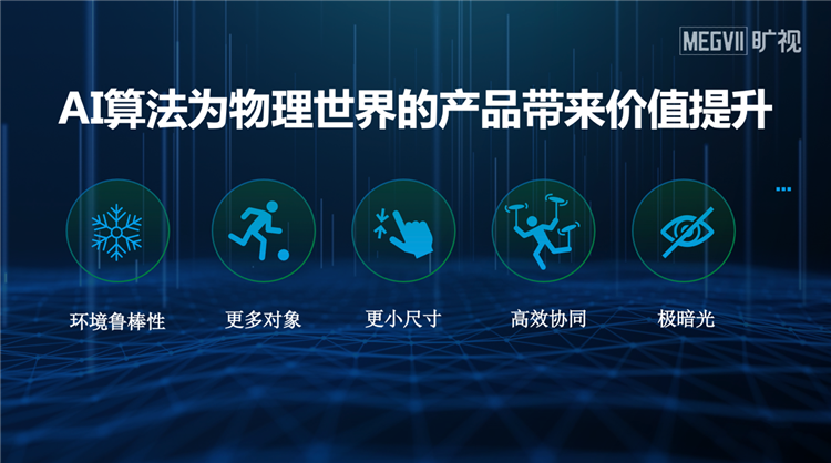 AI算法能让设备和系统更加智能。有AI算法加持的自主移动机器人(AMR),可“脑补”缺失信息,做到不迷路,具有更强环境鲁棒性。AI让设备能处理更多对象,如旷视商品信息视觉识别系统,能同时识别纸箱上的文字、图形、尺寸、形状等众多信息,甚至判断好坏。在AI优化调度下,不同类型智能设备可实现高效协同。AI还能让产品做到更小尺寸,应对极暗光等挑战。