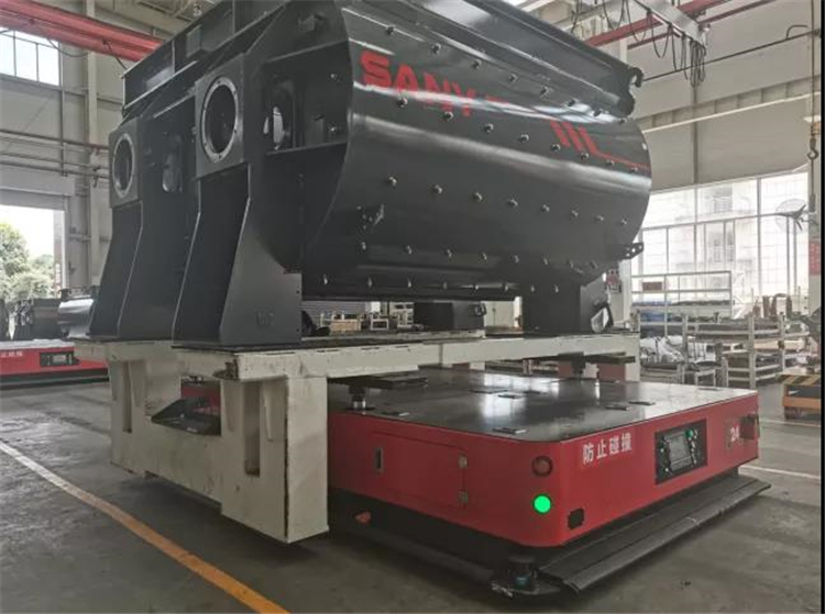 三丰机器人重载AGV应用于三一汽车制造有限公司常德分公司三一常德搅拌站18吨装配线搅拌主机输送项目,包括设备的设计、制造、运输、安装、调试、陪产、服务、验收合格后交付甲方使用,为交钥匙工程 。