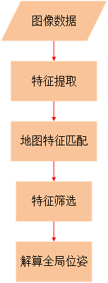 纹理导航算法首先对相机采集的图像进行视觉特征提取,这里的视觉特征主要指点、线及结构特征等;然后,算法会将提取得到的特征与导航地图库中的特征进行匹配、筛选,得到地图库中对应的匹配特征,根据两对特征的相互映射、转换关系解算实时全局位姿,完成AGV设备的导航定位。