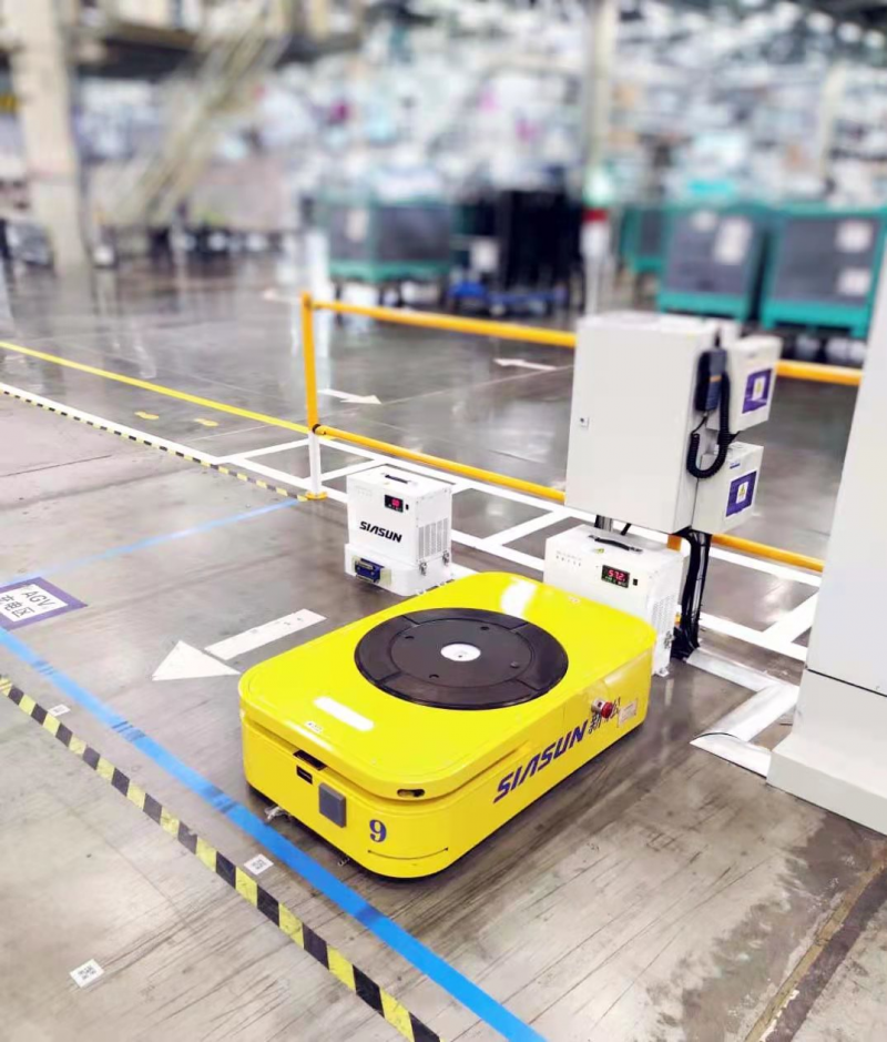 2019年新松机器人为国内某知名车企在总装车间的仪表线、电池线、门段拣选线等产线提供数十台物流配送AGV。项目在实施过程中,原定选用的是激光SLAM导航,由于部分生产线边特征点不明显,环境特征变化太多,导致SLAM导航精度不高,定位不准,影响了使用效率。经过分析后,新松辅以纹理导航解决了因局部区域特征变化较大而产生的问题。在特殊路段,通过对现场地面纹理的拍摄,与AGV本体已有纹理模型构图进行比对,从而确定精确位置,提高了现场的导航精度和定位精度,满足了客户的使用效率要求。