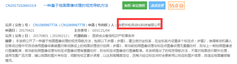 新战略移动机器人产业研究所通过专利检索发现,目前该导航方式为发明专利,主要专利人为合肥井松自动化科技有限公司与上海懒书智能科技有限公司所有,发明人均为刘诗聪。