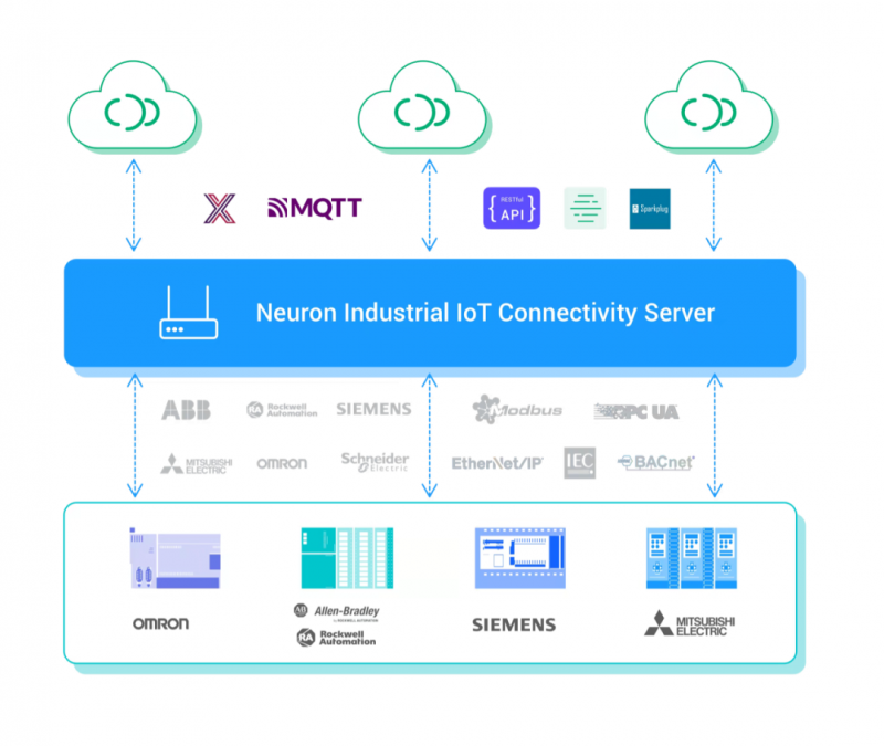 开源后,开发者可以基于 Neuron 提供的针对工业设备协议、总线协议接入的插件式可扩展底层框架,专注于各类设备驱动的开发,快速实现工业物联网平台的数据接入。