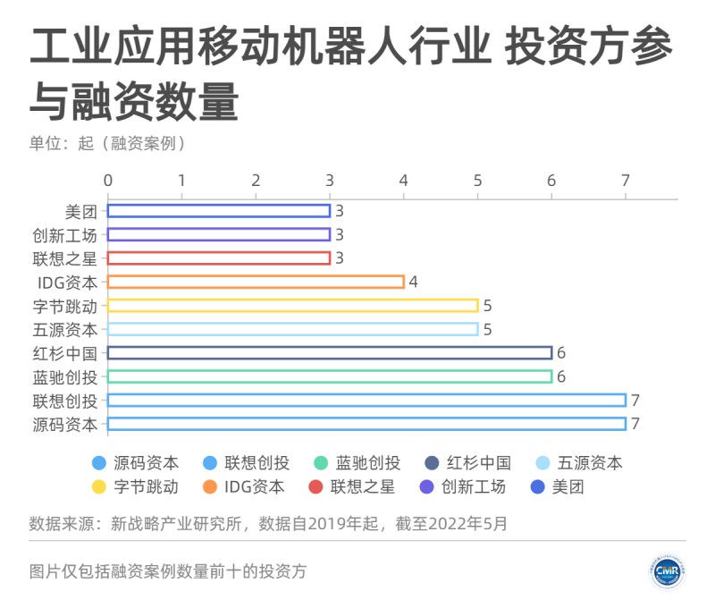 图片:工业移动机器人行业十大资本方参与融资情况【统计时间为2019年-2022年5月,不完全统计】